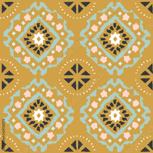 Geometric folk seamless vector pattern with ikat ethnic print of striped ornament