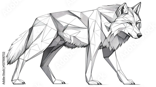 Geometric line drawing of a wolf in a low-poly style.