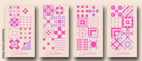 Geometric minimalist Christmas posters. Bauhaus / Zellige Inspired Christmas Backgrounds. Trendy Winter Holidays art templates. good for social media story posts and prints.