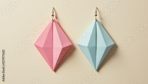 Geometric Paper Pendant Earrings – A pair of geometric paper pendant earrings with sharp angles and clean lines, representing innovative, eco-friendly jewelry design.