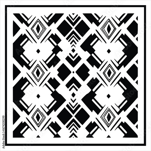 Geometric pattern design in black and white isolated on white background, featuring abstract shapes for modern backgrounds and decorative elements