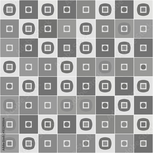 Geometric Pattern of Squares and Circles in Grayscale Tones. Vector Illustrations. EPS Editable