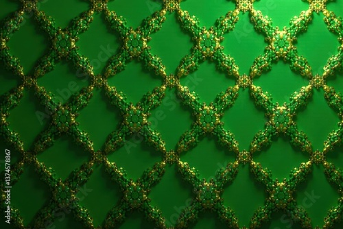Geometric repeating emerald green and gold design Endless loop background , gold leaf, ornamental