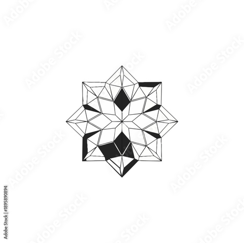 Geometric star design with lines and angles on dark background