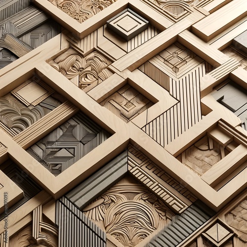 Geometric wooden patterns with layered design