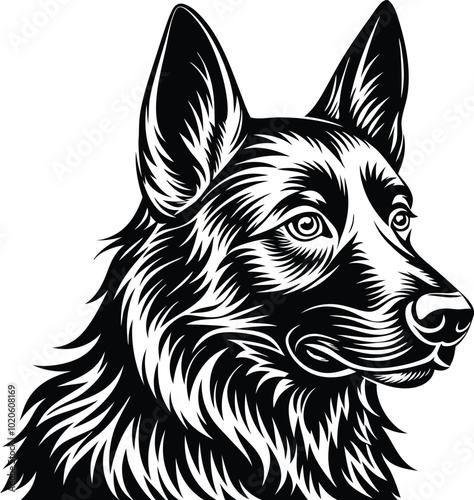 German shepherd dog in different poses on a white background objects silhouette illustration.