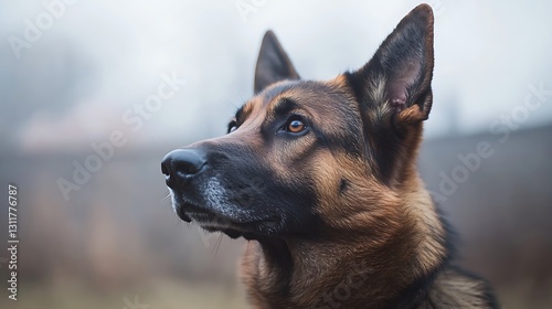 German Shepherd dog portrait, looking up.