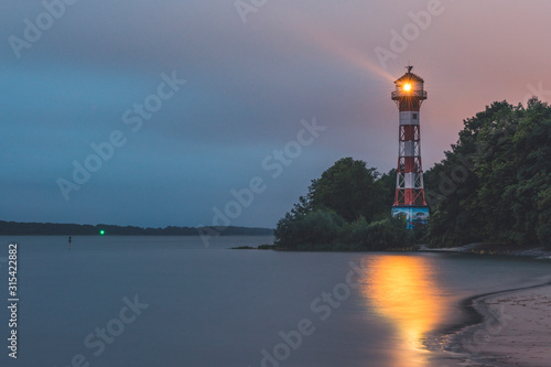 Germany, Hamburg, Rissen lighthouse at dusk