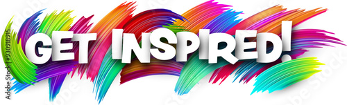 Get inspired paper word sign with colorful spectrum paint brush strokes over white. Vector illustration.