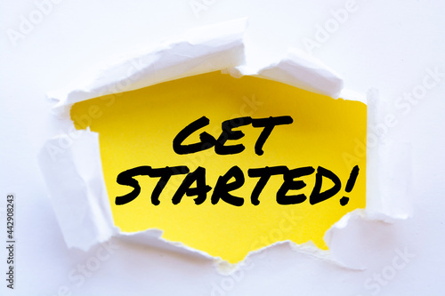 GET STARTED word written under torn paper.