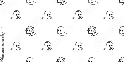 Ghost spooky seamless pattern Halloween skull bone mummy vector cartoon scarf isolated gift wrapping paper tile background repeat wallpaper illustration doodle design
