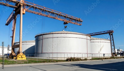 Giant Chemical Storage Warehouse with Overhead Cranes and Shadows
