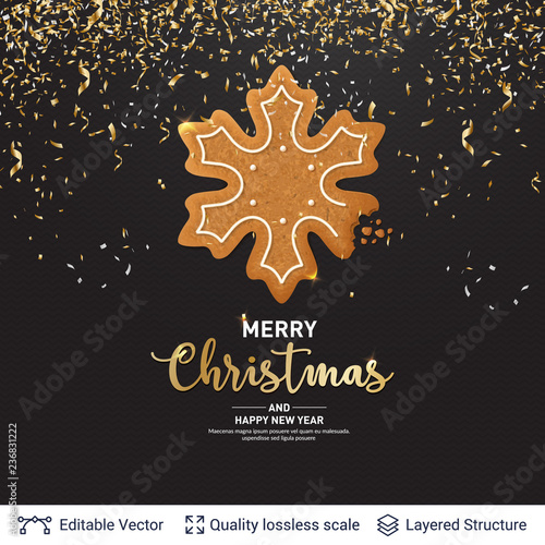 Ginger bread snowflake cookie on dark banner.