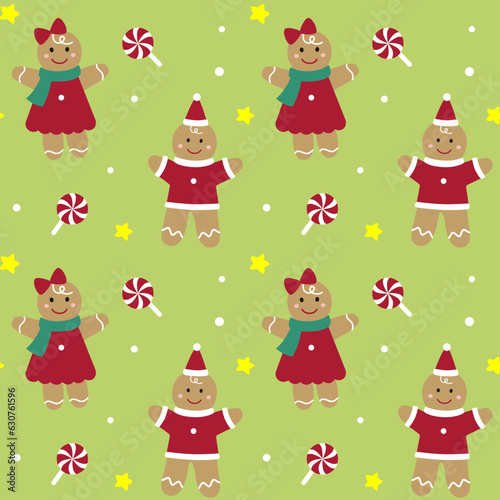 Gingerbread man cookies seamless pattern background