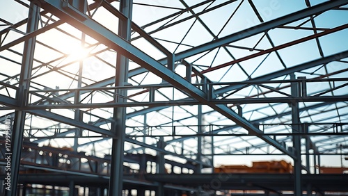 girder. Detailed steel framework in an industrial setting, highlighting structural elements with daylight. safety posters.