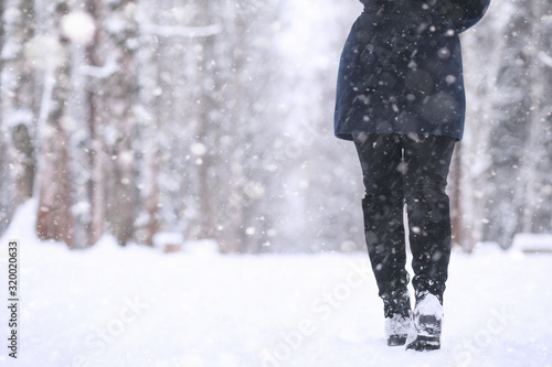 Girl in a winter park in snowfall