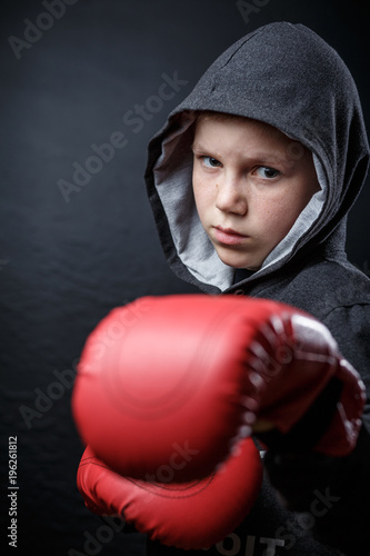 girl is boxing in a hoody
