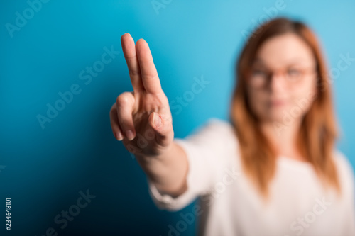 girl is touching with finger