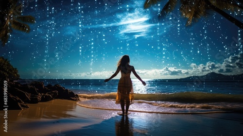Girl near the sea on the sunrise