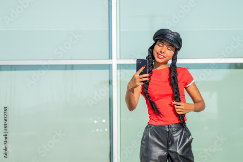 girl recording with mobile phone or making selfie