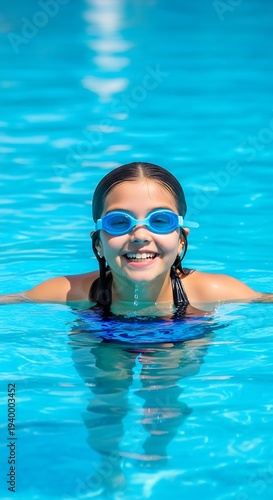 Girl Swimming in Pool.