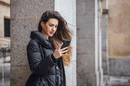 Girl watching a phone on street