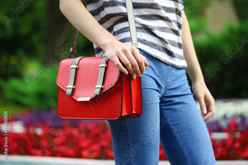 Girl with bag over his shoulder outdoors