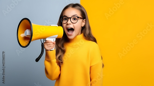Girl with megaphone isolated