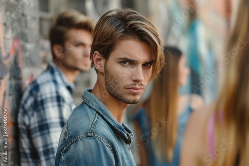 Girlfriend. Disloyal Man with Girlfriend Looking at Another Girl - Cheating Affair in Marriage