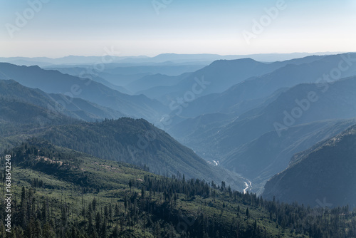 Glacier Point Rd, Yosemite National Park, Mariposa County, California. Sierra Nevada. The Merced River is a 145-mile (233 km)-long tributary of the San Joaquin River