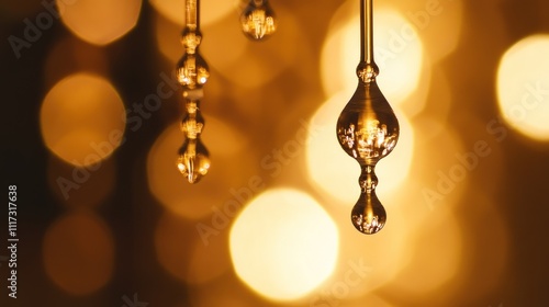 Glass Droplets Hanging Against A Golden Blurred Background