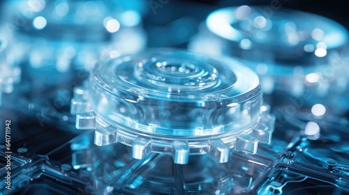 Glass Gears in Motion, engineering and motion. Mechanical harmony.
