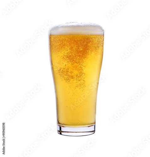 glass of light beer isolated on a white background.