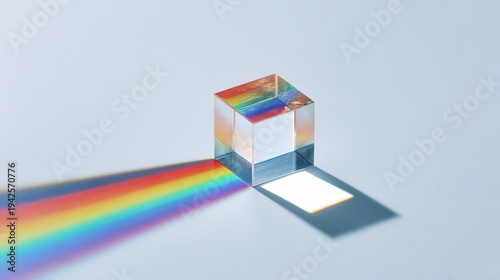 Glass Prism Refracting Pure White Light Into a Rainbow Spectrum