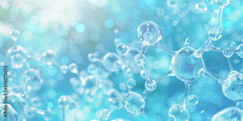 Glass-like molecular structure with a soft blue and white bokeh background representing scientific and technological themes.