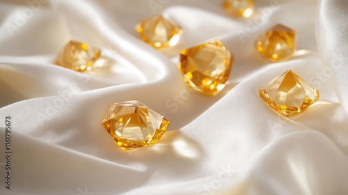 Glimmering Yellow Gems on Soft Elegant Satin Fabric Background