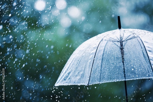 Glistening Raindrops on a Tranquil Umbrella Scene