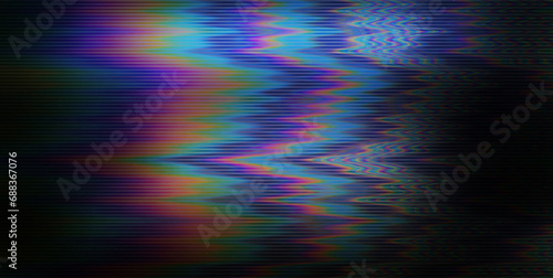 Glitched flickering background, exhibiting distortion, noise, and scanlines reminiscent of an aging VHS tape displayed on a screen.