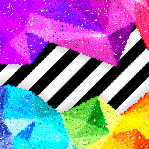 Glitter sequin border on a chevron background, holiday celebration pattern for festive cards, banners, posters.