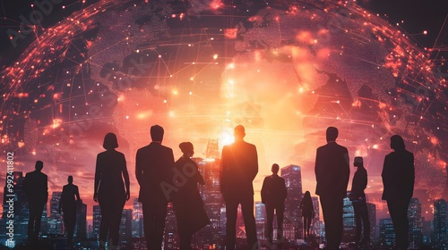 Global business concept. Silhouette of business people.