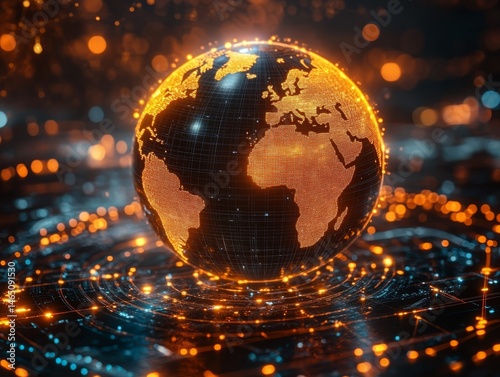 Global Digital Network: A luminous globe displays interconnectedness across continents, highlighting the digital landscape and the flow of global data