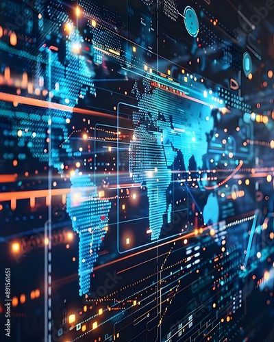 global digital world map data network technology background. AI Generated