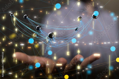 Global network. Blockchain. 3D illustration. Neural networks and artificial intelligence. Abstract