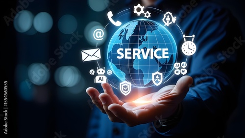 Global service concept with digital icons and ai technology displayed on a person s hand