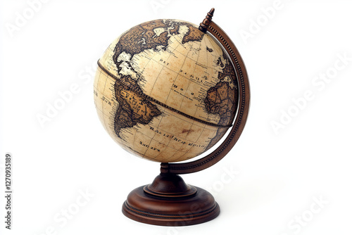 Globe with detailed continents and oceans, isolated on white background