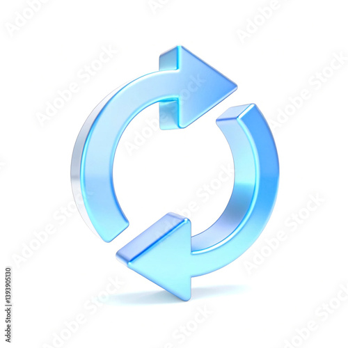 Glossy Blue Circular Arrows Representing Continuous Cycle and Refresh Concept