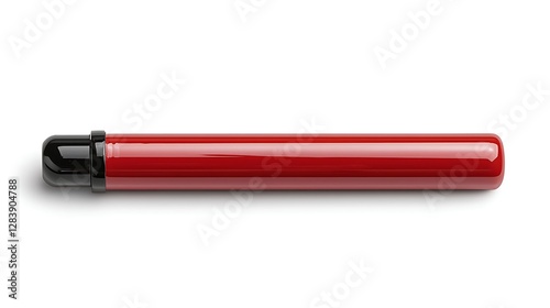 Glossy red pen with black cap resting on a clean white surface for creative design and writing needs