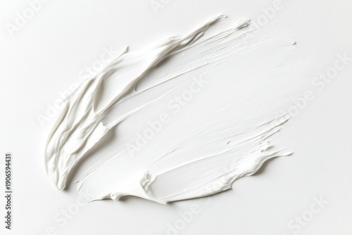 Glossy white cream smear with texture on a clean white background illustrating simple abstract design