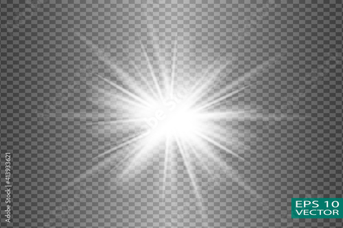 Glow white light effect set, lens flare, explosion, glitter, line, sun flash, spark and stars. Abstract special effect element design.