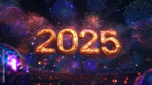 Glowing 2025 New Year fireworks celebration.